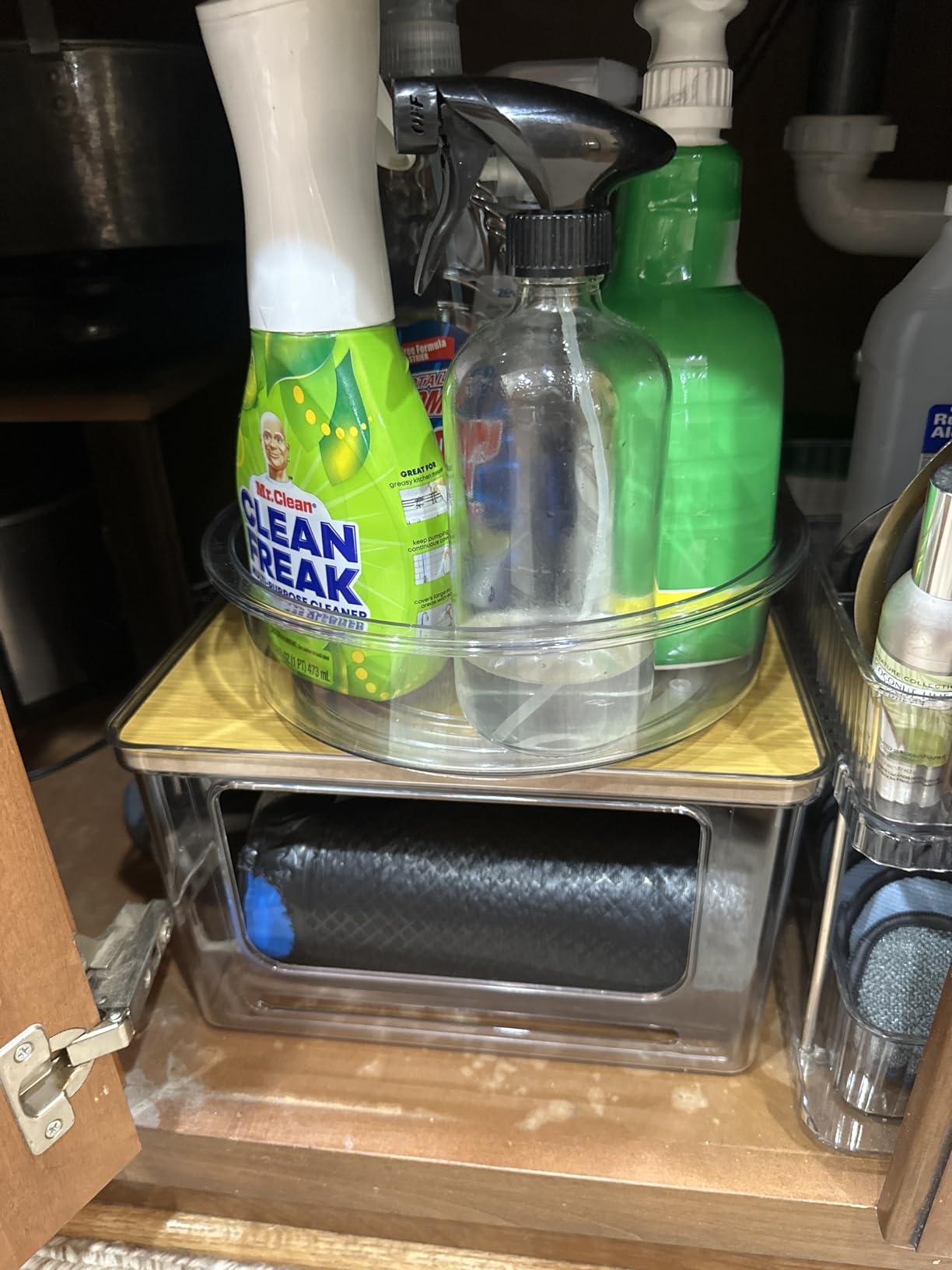 Hudgan Stackable Storage with Bamboo Top for Laundry Room Organization, Extra Large Trash Bag/Garbage Bag Dispenser, Under Sink Organizer, Pantry Organizers customer photo 1