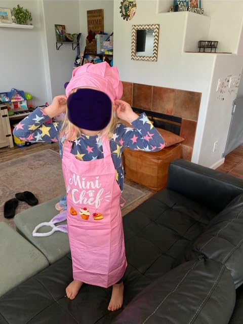 Kid Apron and Chef Hat Set, 3 Pcs Children Cooking Baking Set Kits Role Play Chef Toy Kid Cooking Gift for Girls Boys (Pink)
