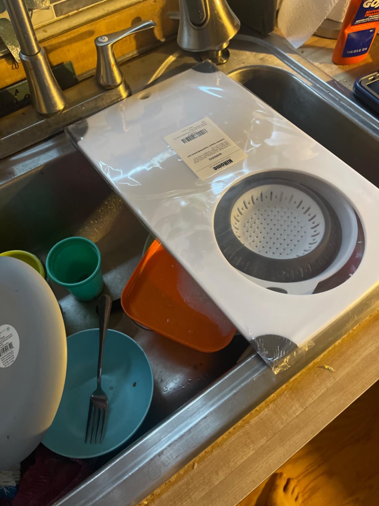 2. NiHome Over the Sink Cutting Board with Colander – BEST VALUE
