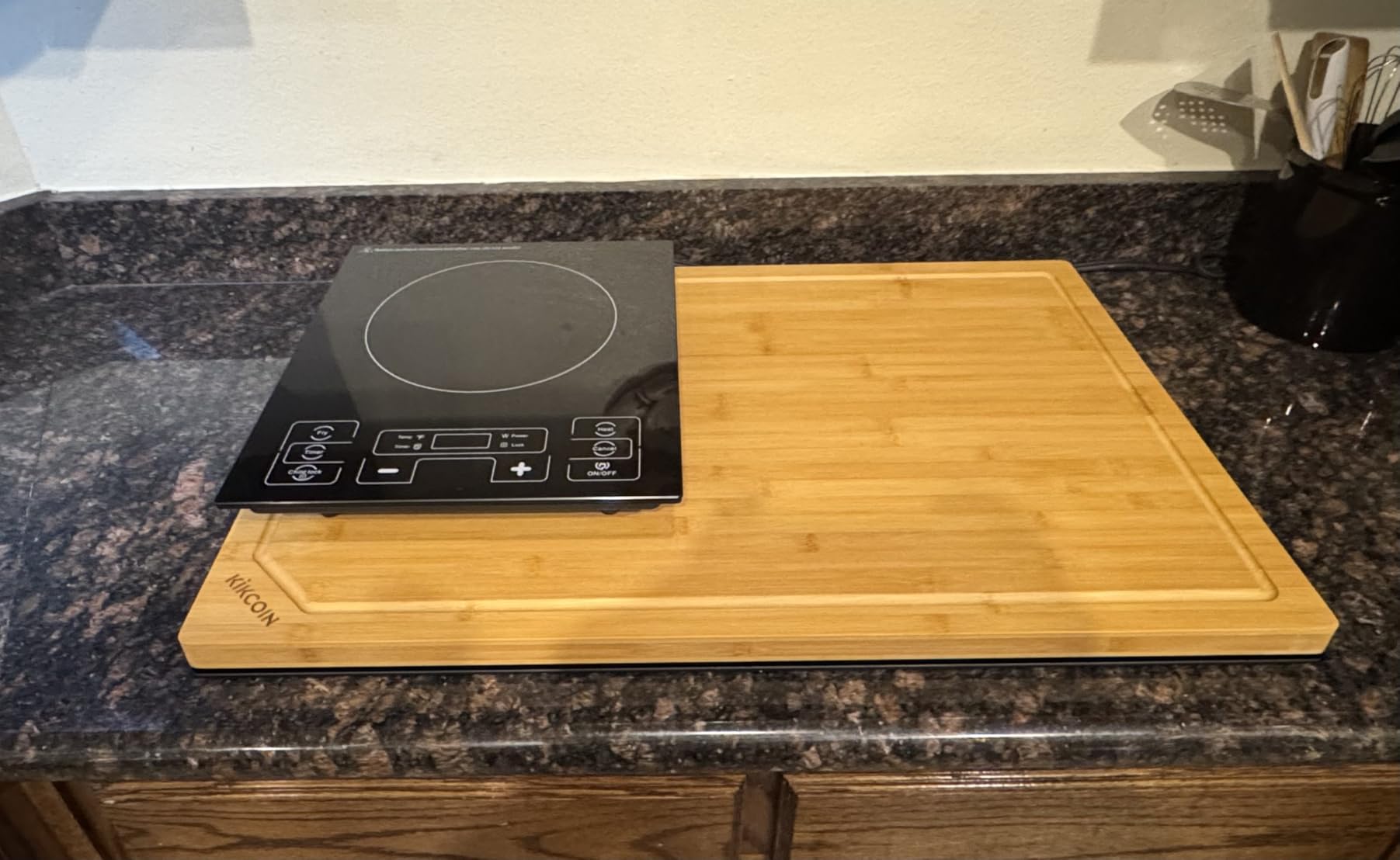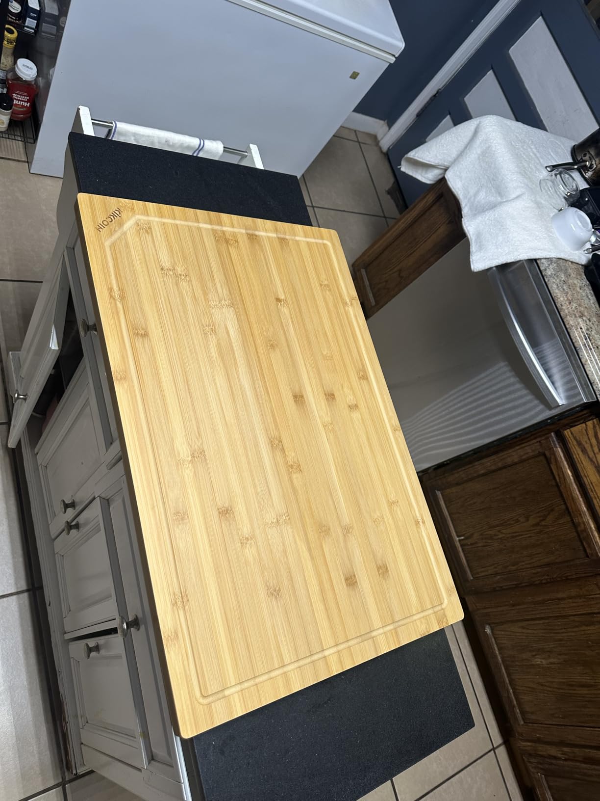 The 10,580 reviews and 4.5 star rating suggest widespread satisfaction. Users particularly praise the size for stovetop use – many mention covering their burners to create additional counter space when not cooking. The juice groove design is effective at containing liquids, though not as deep as some premium options. The natural bamboo appearance looks beautiful and works well as a serving board for entertaining.